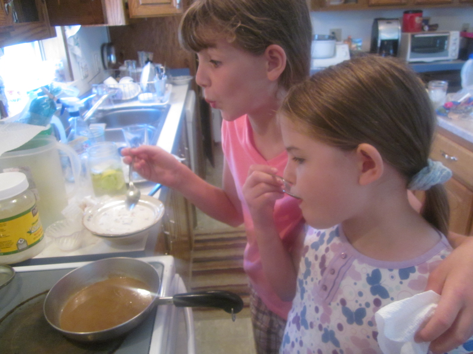 It was during lunch – so ignore the mess, (It was keto grilled cheese for Autumn today)- I am surprised we had any caramel left due to all the taste testing going on!