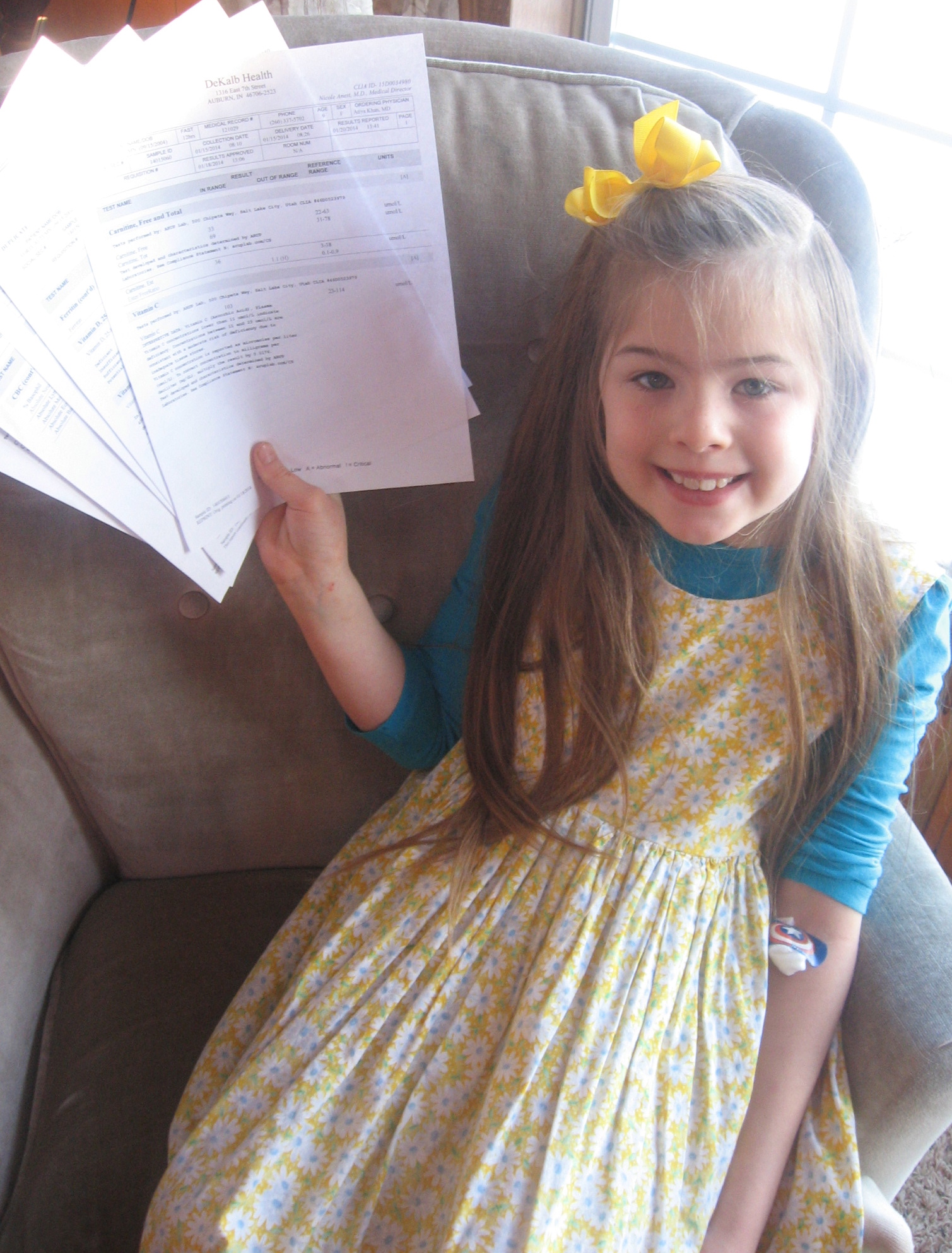 *A note on Carnitine: When we first started Autumn on the diet we did not know if we should use carnitine or not. On her first set of follow-up labs, her carnitine was low so we started her on an over-the counter brand. Initially that helped, but then her levels became low again. Several months later on another follow-up lab test we found her to be low again- despite quite a high dose of the over-the-counter, so we started her on the prescription strength, levo-carnitine. The result has been an improved carnitine ratio which increased her ketone levels. This allowed us to lower her ratio and thus were able to add more fruits and veggies. The dose she is on is actually lower than what is typically prescribed for her weight, but with her ketone levels raising quite high, it was a good dose for her. Once again, I have found the blood ketone monitor to be an indispensable tool. Without having the monitor, we would not have seen the levels rise. Here is an explanation of carnitine from our dietitian: