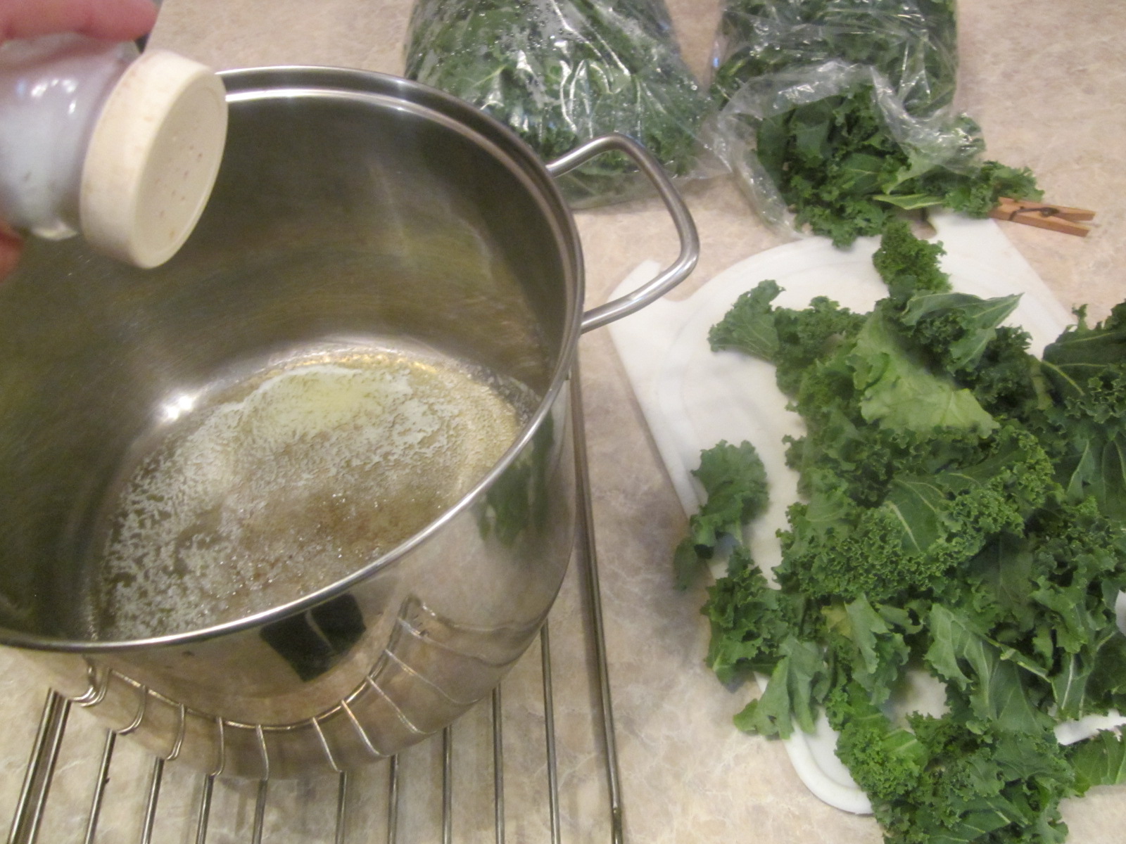 The only ingredients needed are Kale, butter (or olive oil), and salt. (Click on “Recipes” tab for exact measurements.)