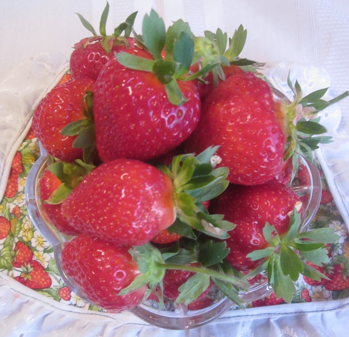 It only takes a couple of minutes to mix up the ingredients, and then dip in the strawberries. NOTE: The best way to dip – actually the only way to we dip – is to make sure the berries have been in the refrigerator for at least 1/2 an hour or so, so that they are COLD. When they are cold and you dip them, the chocolate hardens right away. It is best to use a smaller container so that it is very full of the chocolate when you dip. Also, stir your mixture in between dipping.
